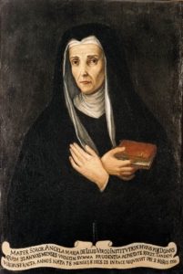 Trecând peste pragul vârstei de 40 de ani, după cum se cerea, la 4 decembrie 1701, a făcut votul public de castitate prin care a dat stării sale de viaţă o stabilitate definitivă. În timpul Postului Mare, din anul 1702, l-a întâlnit pe pr. Marcheselli, sosit de câteva luni în Assisi, pe care l-a ales ca şi îndrumător spiritual. Acesta, luminat de Dumnezeu, a văzut în ea sufletul sfânt, departe de cele lumeşti şi destinată de Dumnezeu să devină fondatoarea deja perfectă a Congregaţiei, cu puţin înainte gândită de el însuşi. Angela a acceptat acest plan al lui Dumnezeu „din ascultare”, plan pe care l-a dus la îndeplinire cu umilinţă, în tăcere şi cu multă suferinţă. A lucrat mult… a suferit mult din iubire faţă de Dumnezeul său şi faţă de oameni. A condus casa timp de aproximativ 34 de ani cu prudenţă şi zel.